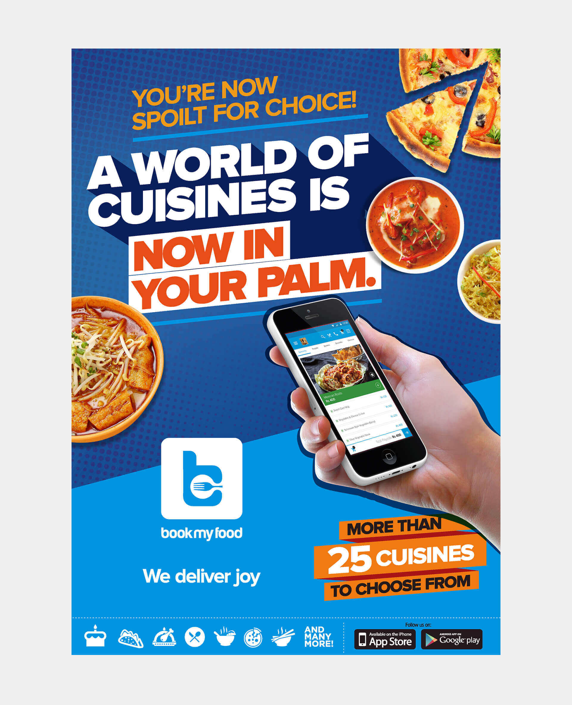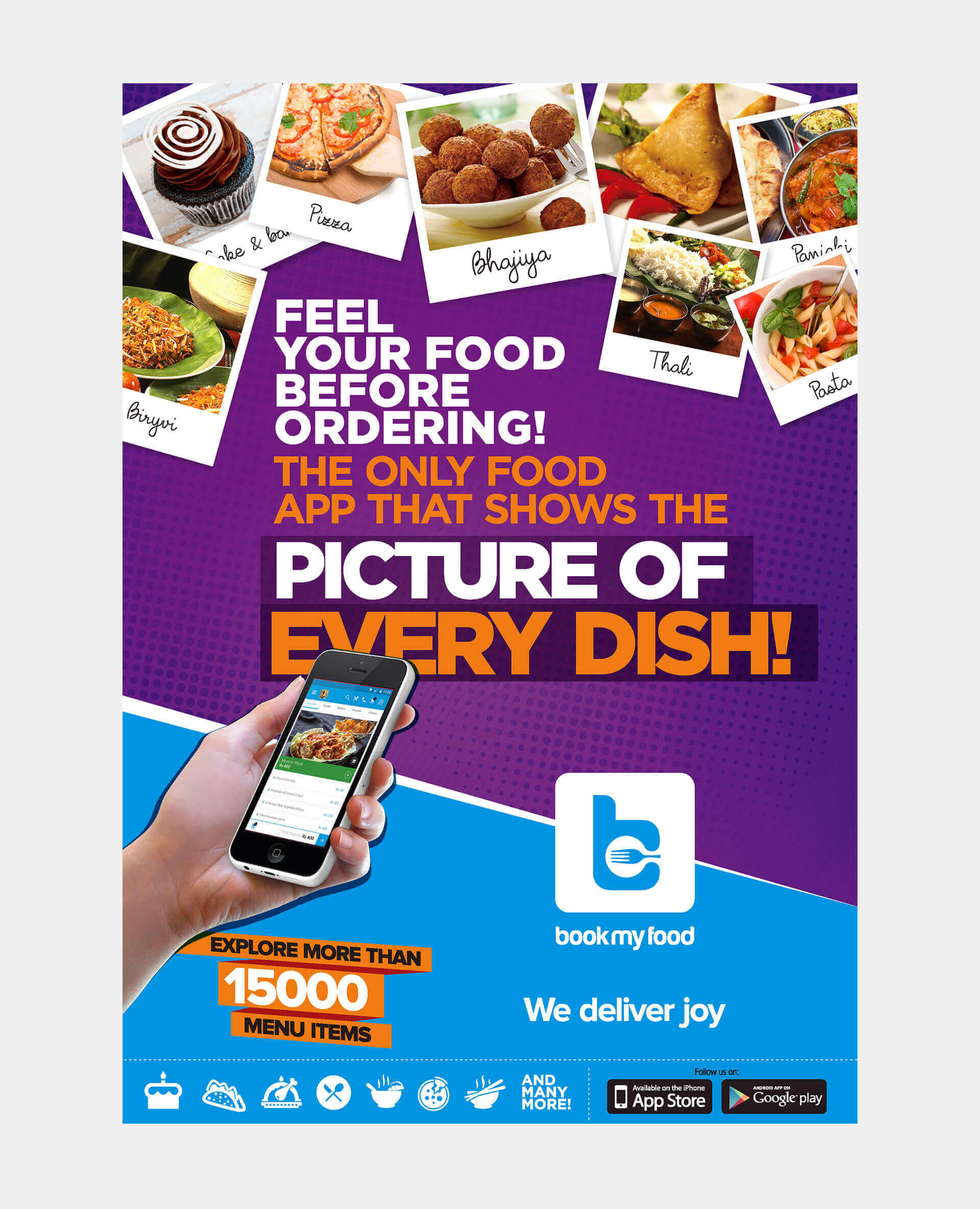 We established the brand from scratch. From the brand name, the logo, to the app interface, its digital marketing, we handled the entire planning & execution for bookmyfood. We focussed our communication on two angles-locations and cuisines. We highlighted that the app delivered to maximum locations and offers a wide variety of cuisines to choose from. Book My Food was also established as, the only food app that shows the photograph of every dish, and since it was the Food & Beverages space, it was a USP that couldn't be overlooked.