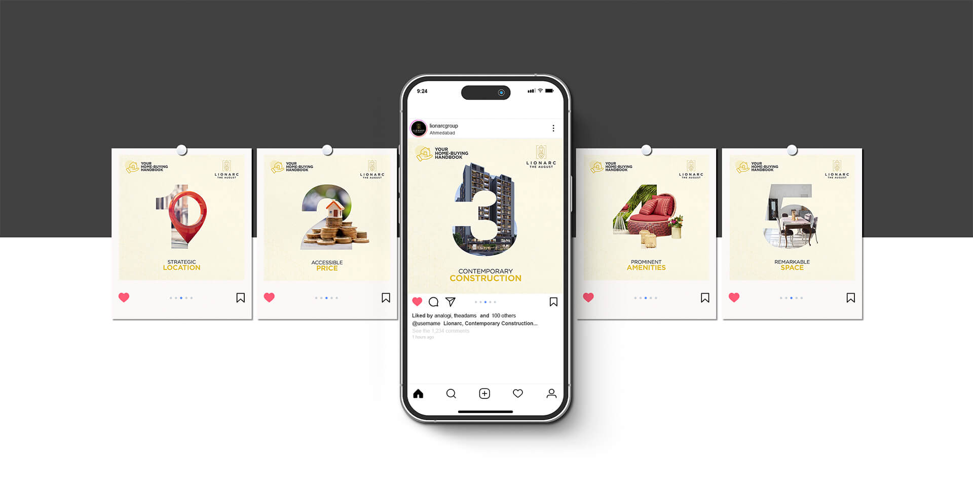 We ensured every brand asset reflected Lionarc's values of thoughtful design, intelligent architecture, and elevated living, starting with the logo, color palette, styling, and the communication strategy.