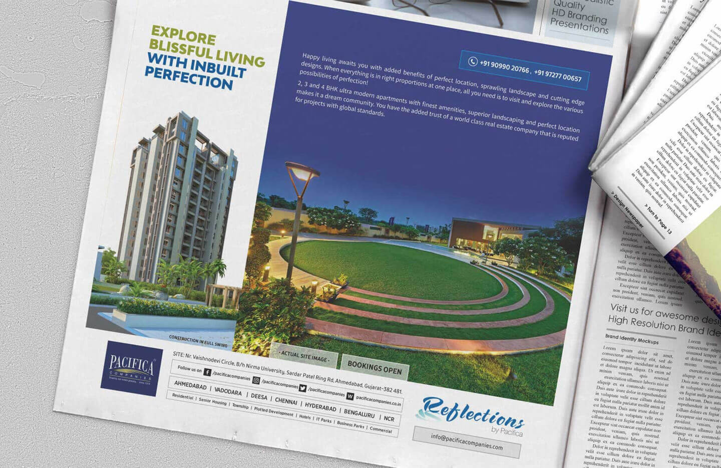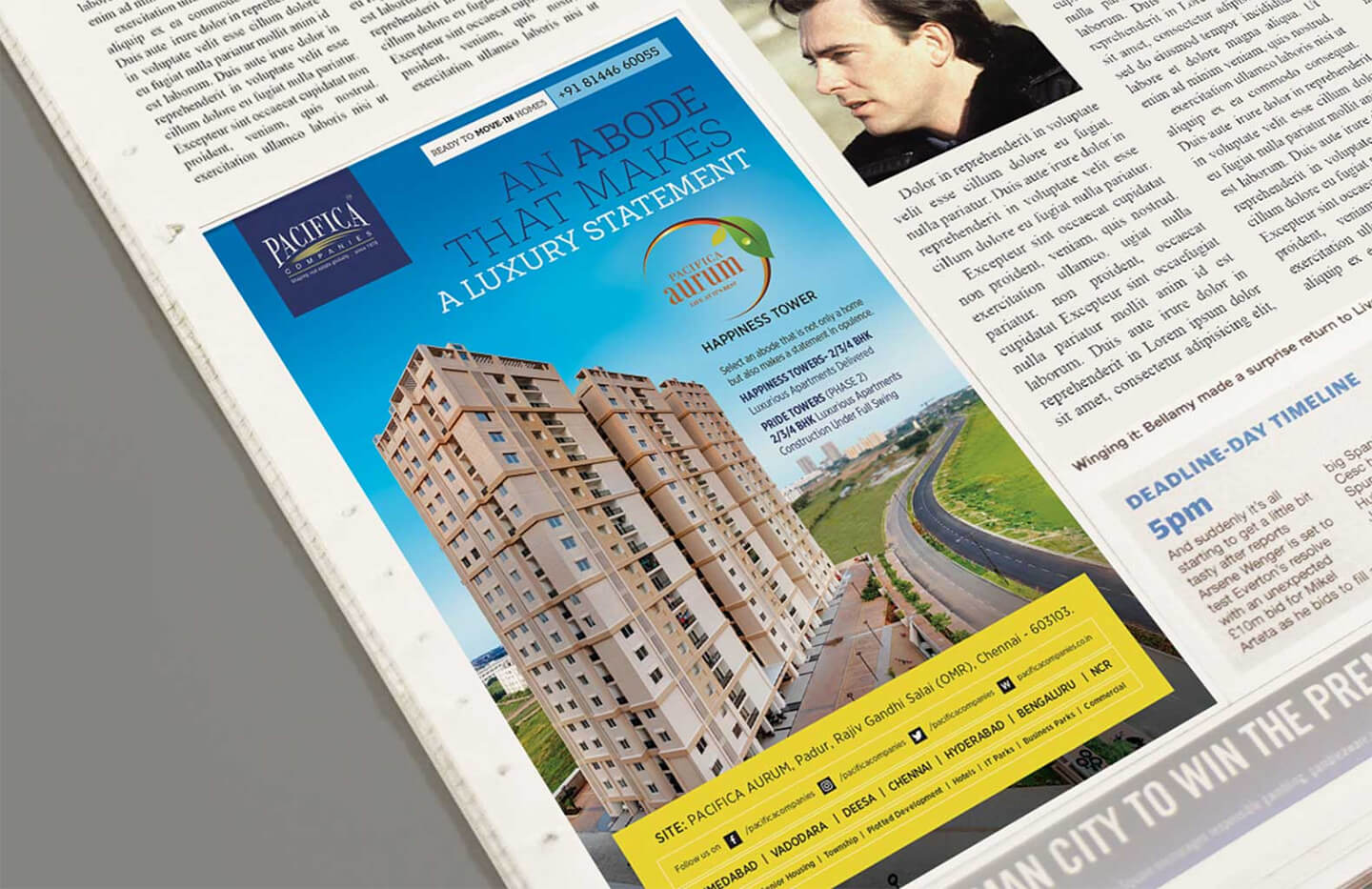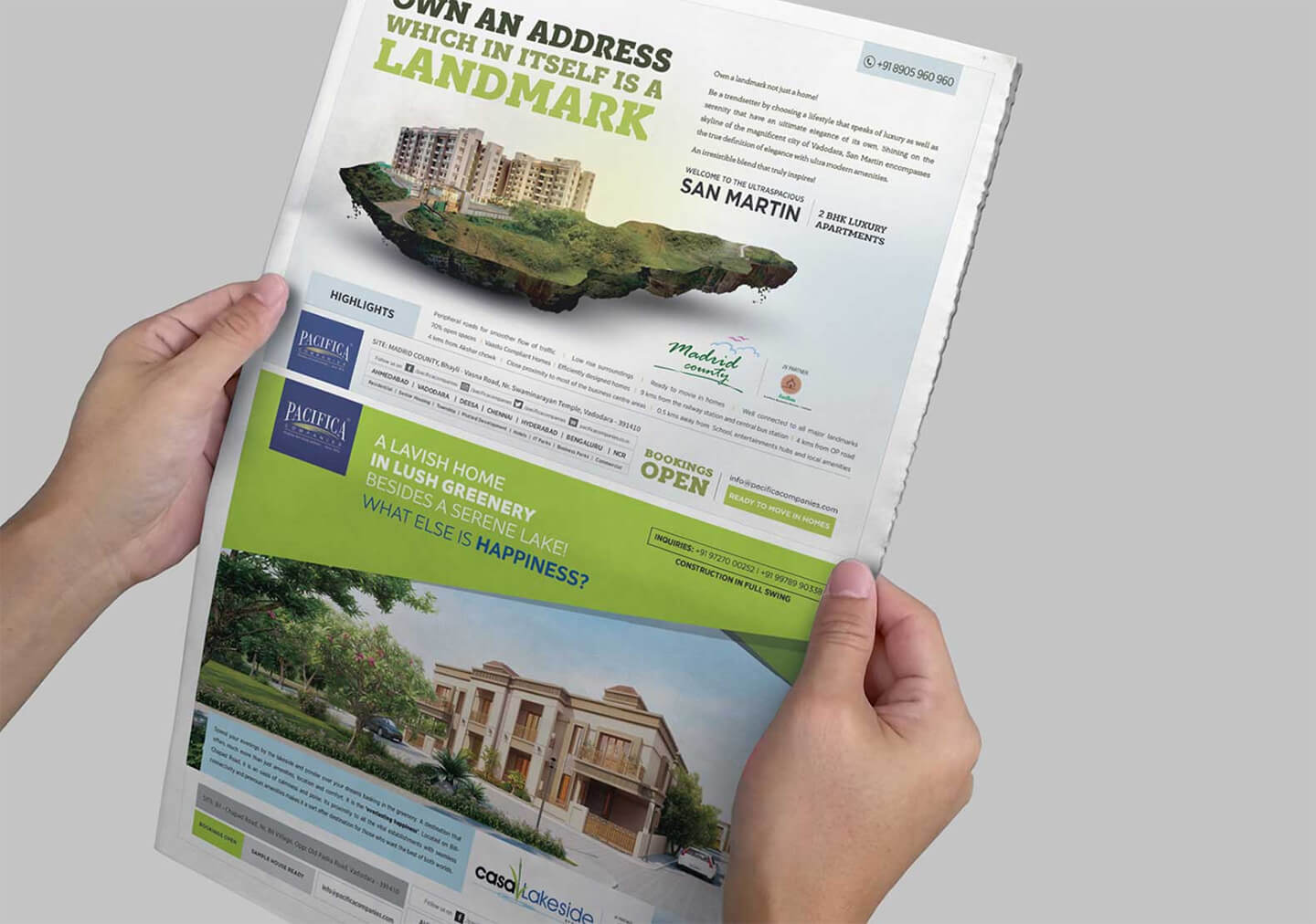 Pacifica is a well known name in the real estate sector and we were approached by them to design their hoardings, e-mailers, newspaper ads, inserts and flyers. Since multiple projects were being promoted at the same time, the challenge was to ensure fast paced delivery in short turnaround times, almost on a daily basis. Each project had a theme, a promotional language, and most importantly amenities, offers and a pricing of its own.
