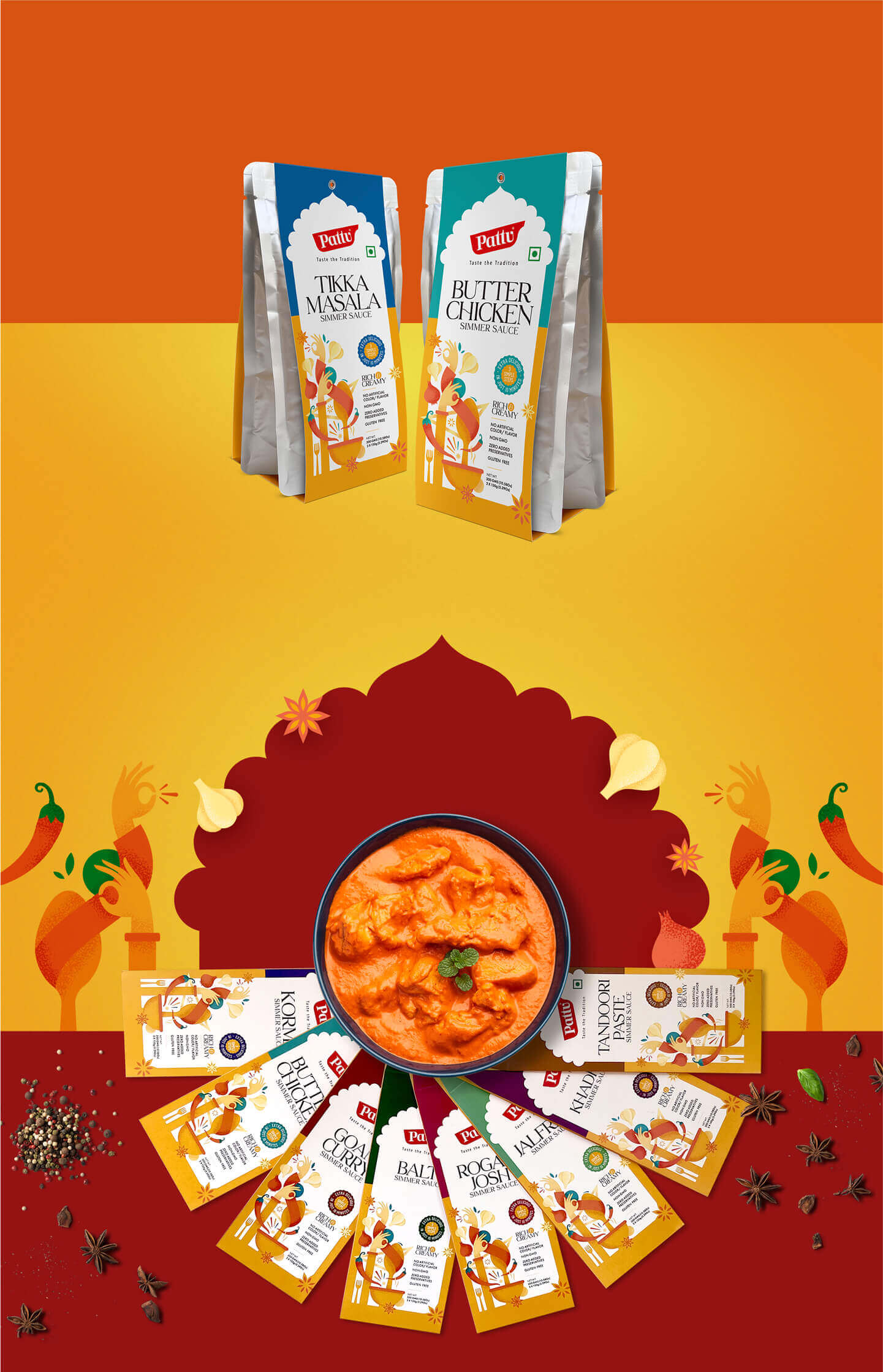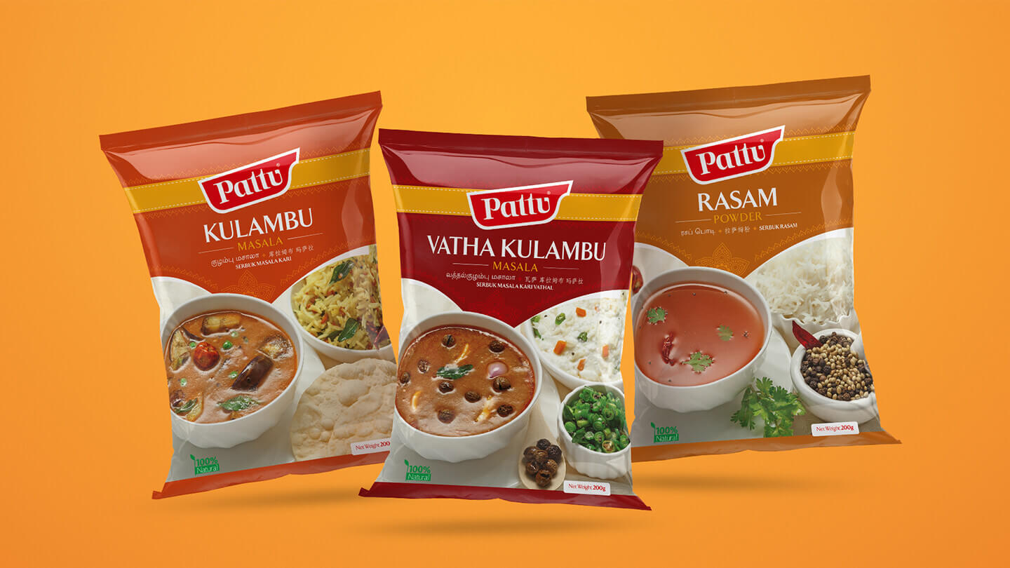 Selling Indian products in Malaysia, Singapore, Indonesia & Australia, with India's touch was the ambition. The FMCG market in these countries was full of CTC (Chilli, Turmeric, Coriander) brands both local & international and Pattu wanted to stand out in this space. Doing this was a challenge for the client and cracking the answer to this question was the challenge for us.