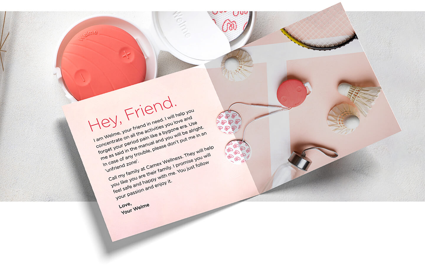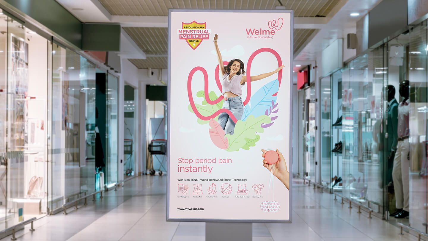 We formulated a brand strategy that would help establish Welme as India's first wearable menstrual pain relief device and the brand as a wellness technology brand. The name WelMe was chosen and then the elements of identity such as logo, tagline, packaging design were all built. The web design and digital marketing followed as a part of the soft launch. Stay tuned...